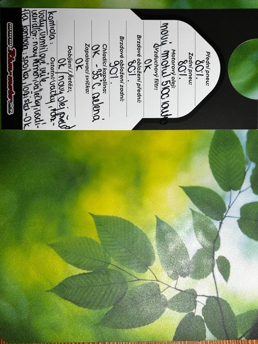 Po servisu – nové oleje, filtry, nové komponenty variátoru ( řemen, válečky, vodítka), zkontrolovaná vačka, rozvody a ventilové vůle atd. Motor s super stavu viz foto.