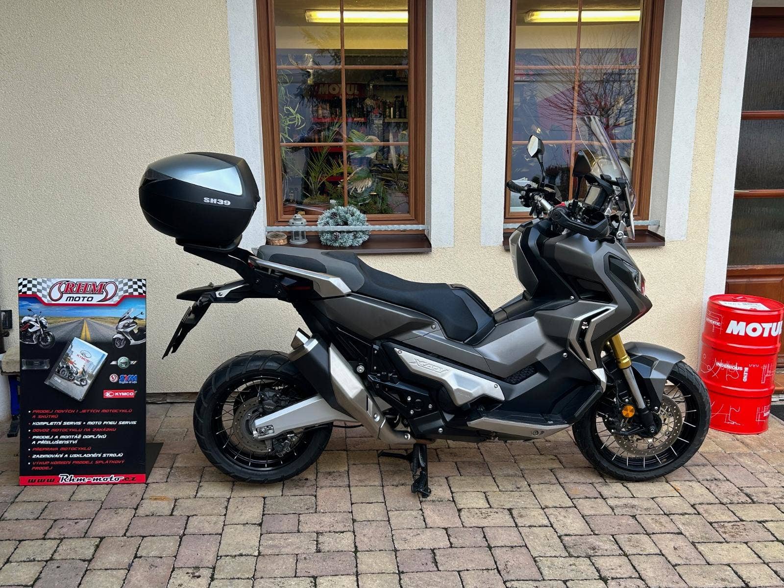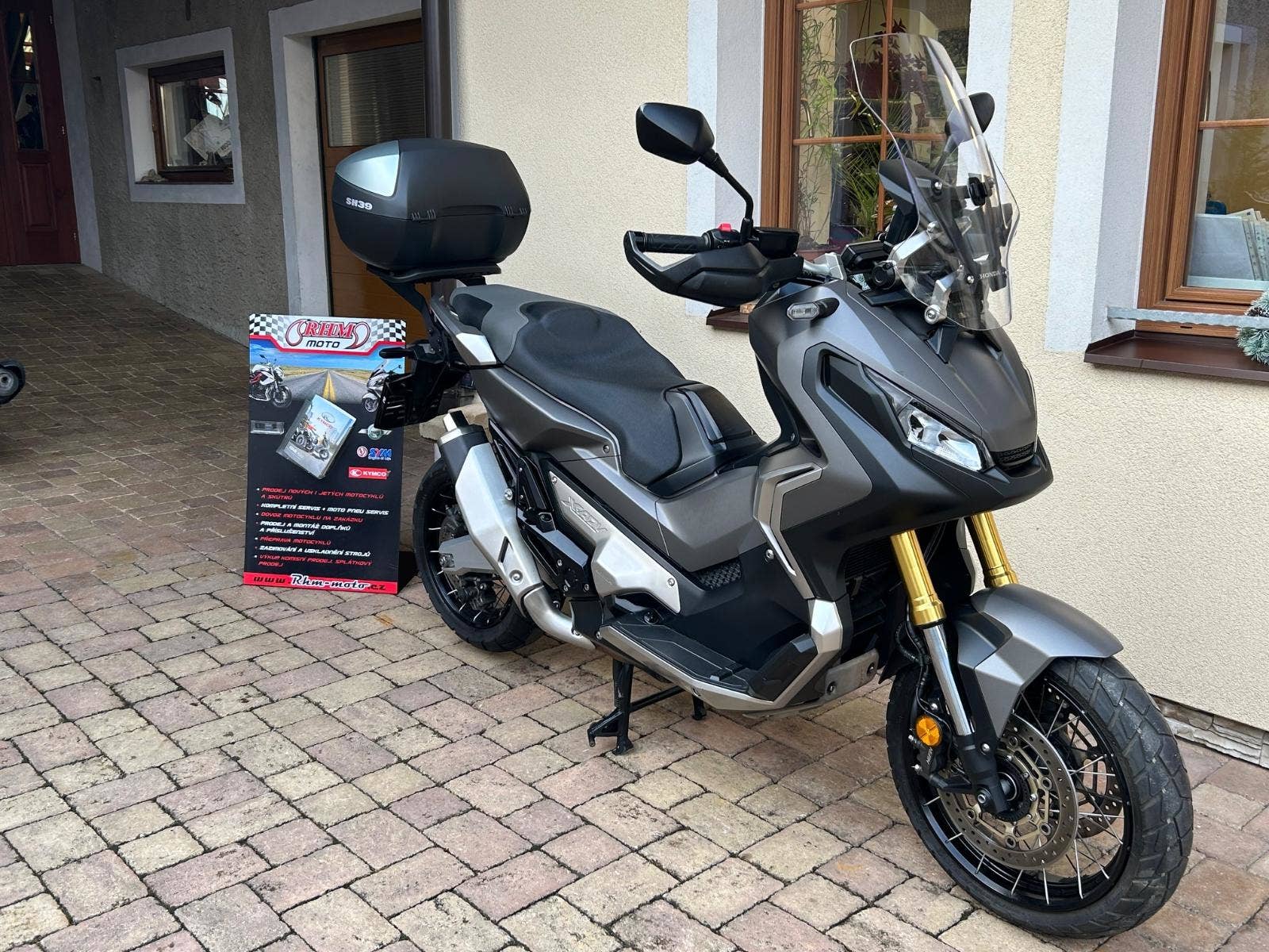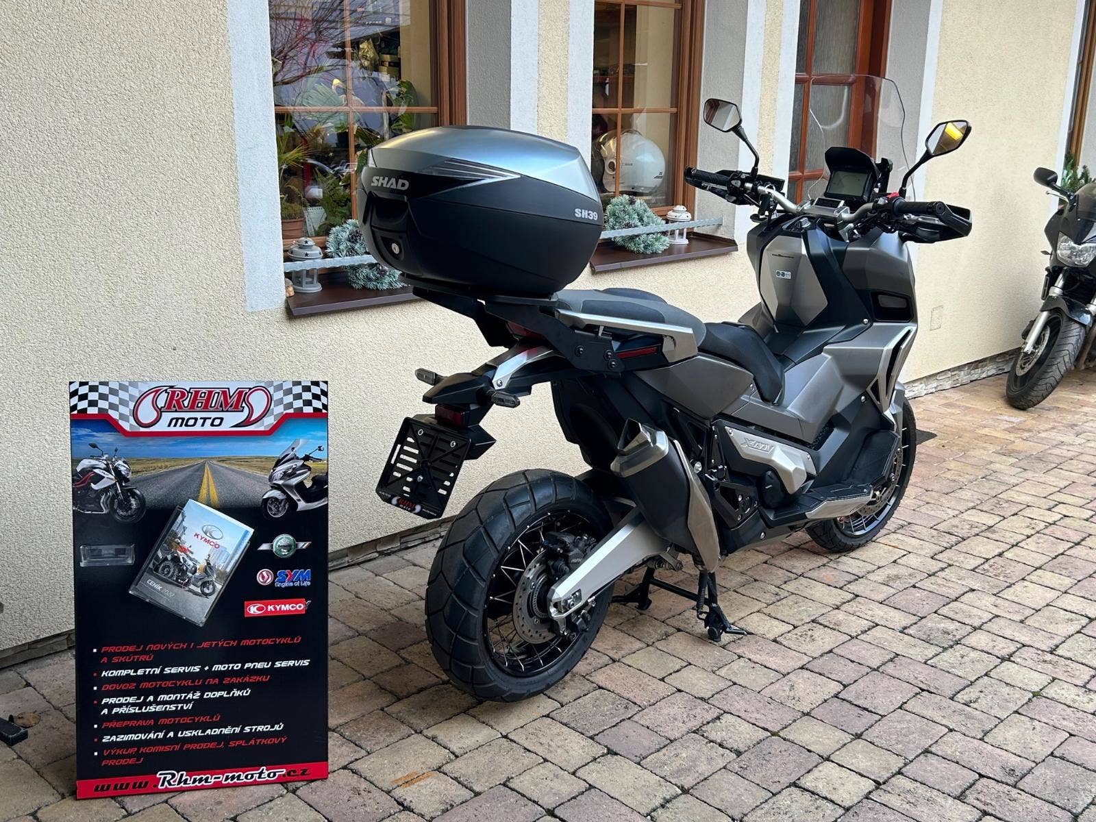 V ceně skútru je držák kufru SHAD, kufr dle vlastního výběru není v ceně (na foto SH39´= 3.800 Kč)