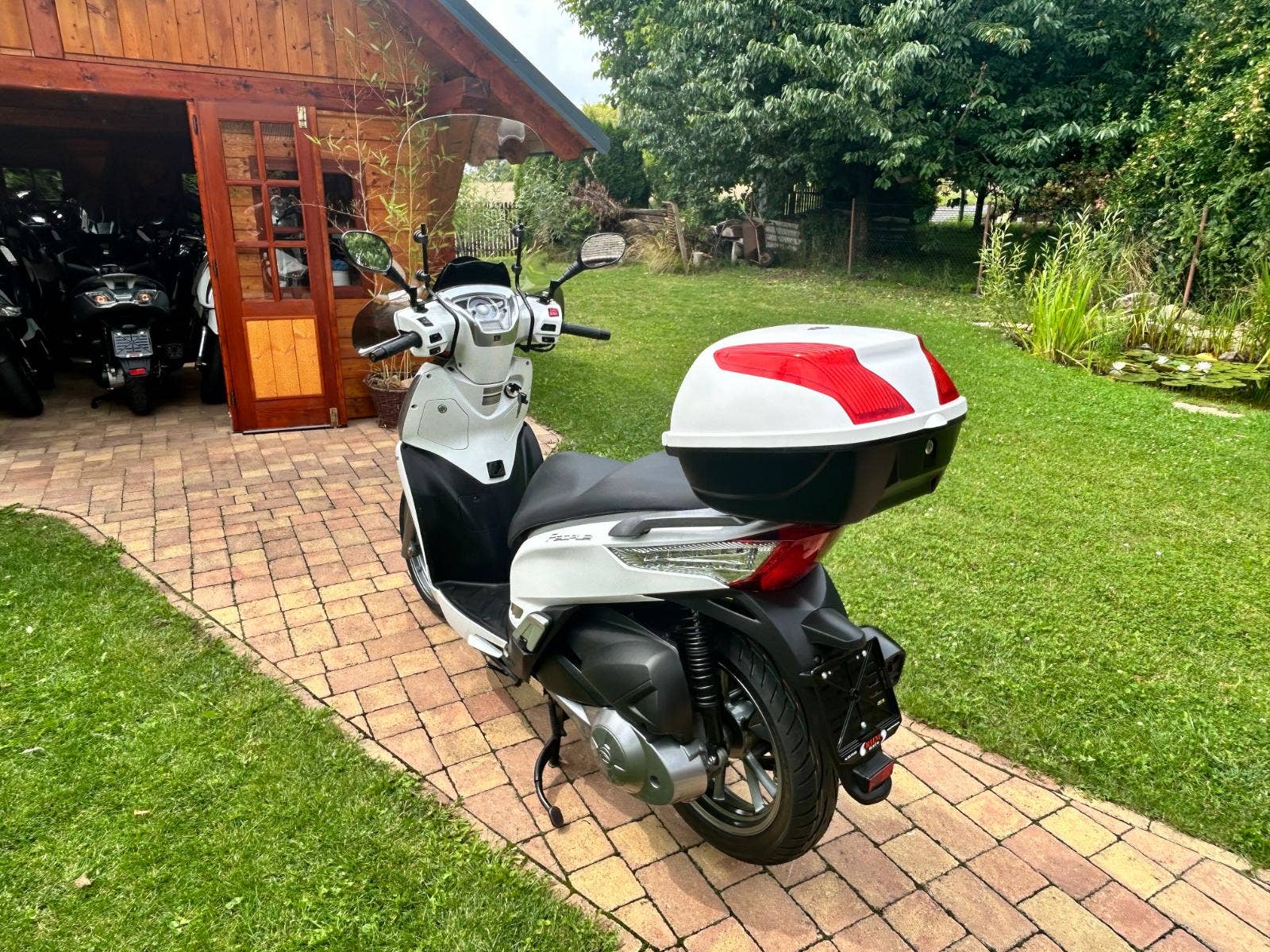 Středně velký, značkový skútr, s poměrně výkonným motorem.