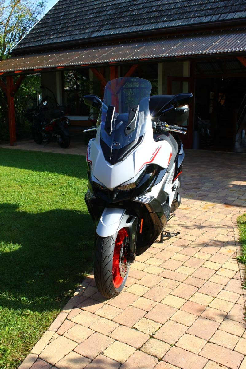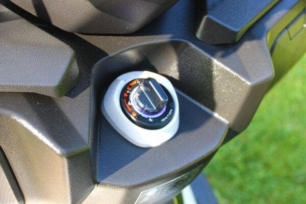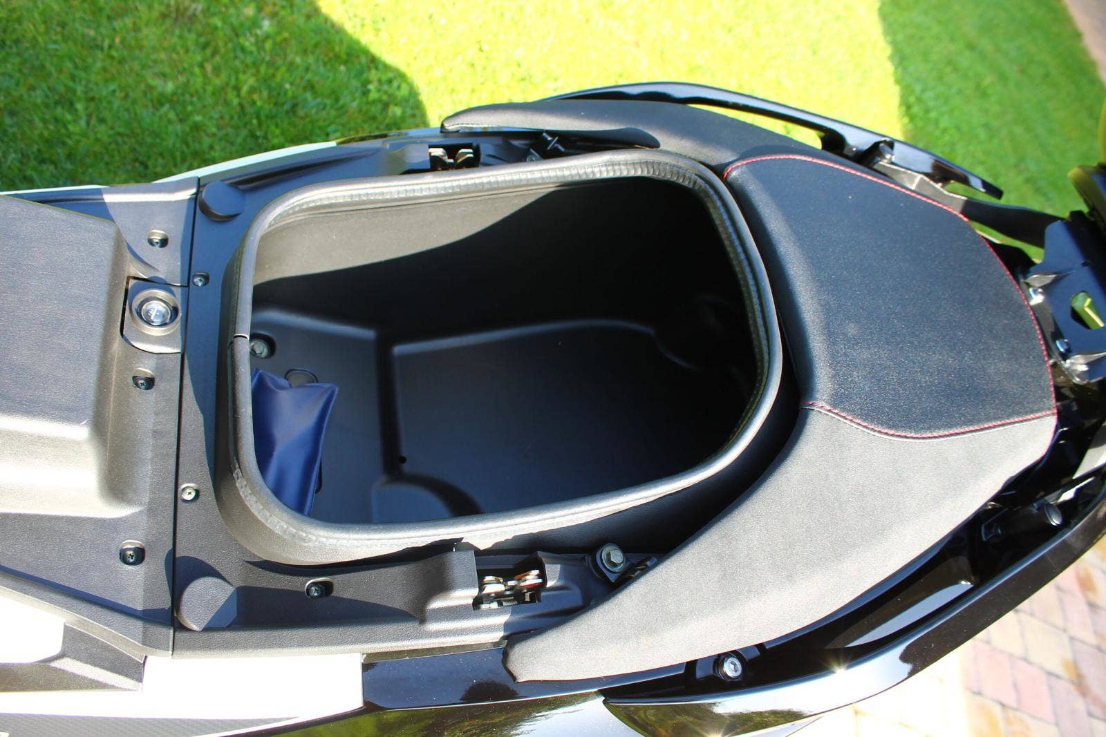 Větrný štítek lze rychle a intuitivně seřídit bez pomoci nářadí do pěti poloh. Nová je také dělená sedačka: pohodlně ovladačem na řídítkách lze otevřít sedadlo řidiče.