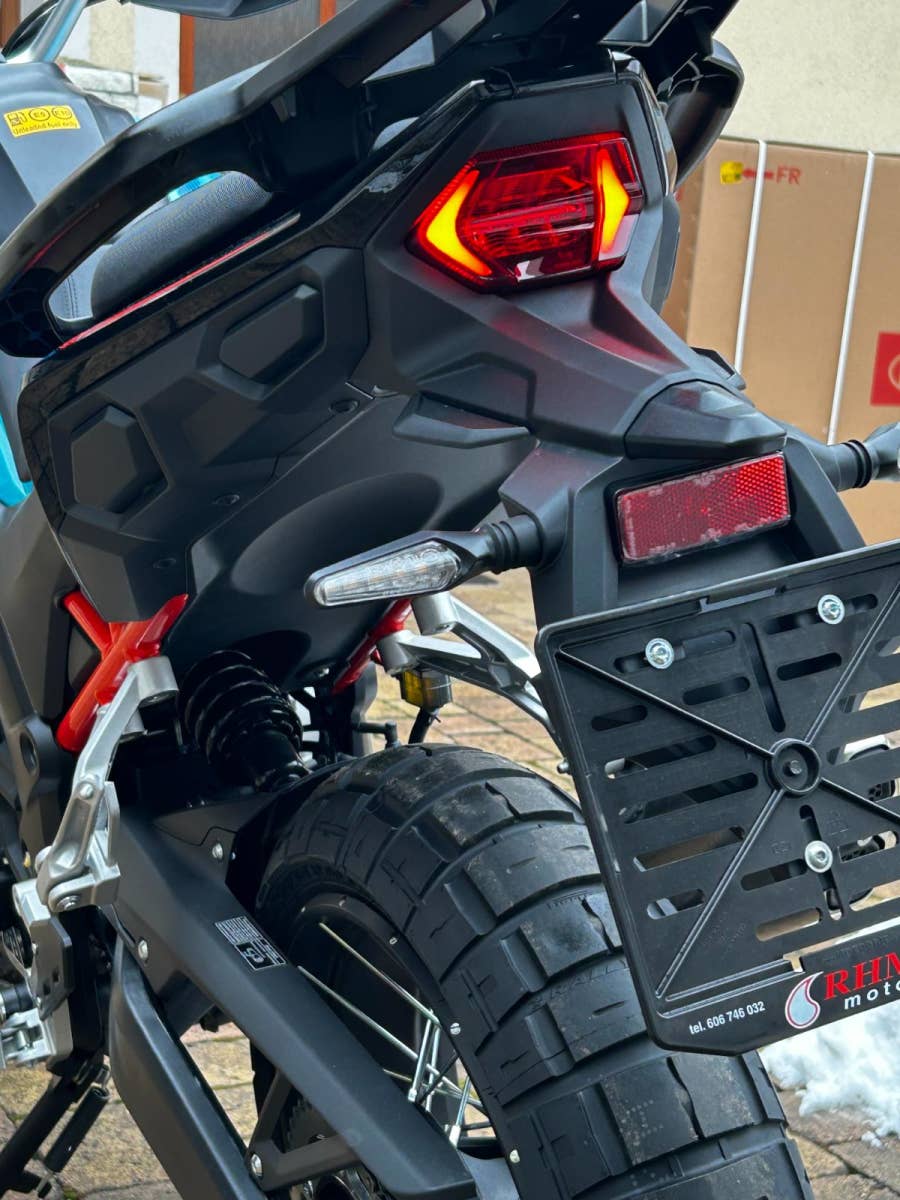 Motocykl plný dobrodružství. Řadový dvouválec o objemu 349 ccm, s plynulou odezvou a výrazným tónem výfuku. Minimální spotřeba 4,3 l /100 km a 18ti litrová nádrž nabízí dojezd až 400 km na jedno natankování. Lehký stroj o váze 180 kg. V režimu off-forad je zadní ABS vypnuto pro lepší kontrolu na sypkém, nebo kluzkém povrchu. 3 jízdní režimy (standart, sport, off-road) a plnou integraci s navigací nastavíte i na vertikální obrazovce ve stylu rallye. Příjemně vás překvapí podsvícené přepínače na řídítkách vhodné i pro jízdu při špatné viditelnosti. Výška sedla, široká řídítka a vzpřímená poloha zajišťují pohodlí a kontrolu jak pro začátečníky, tak pro „ostřílené“ jezdce.