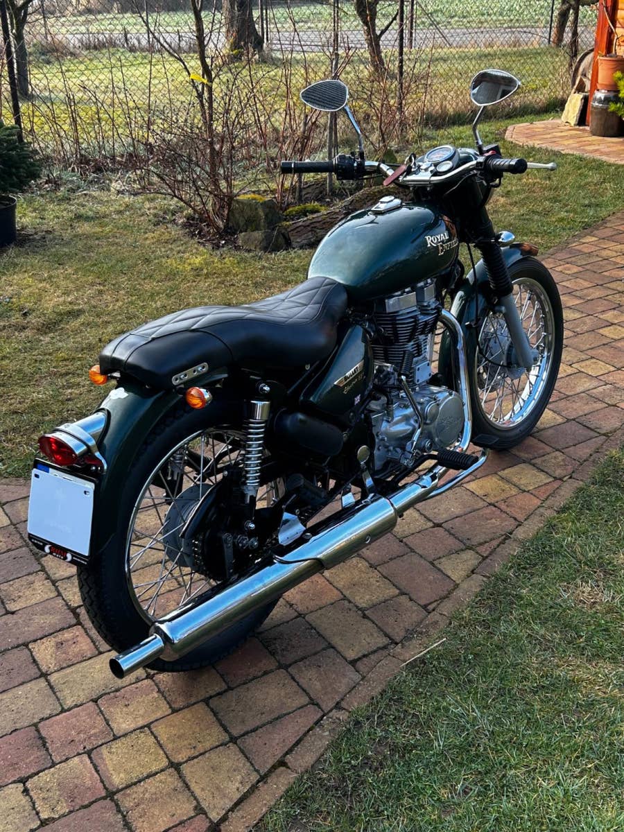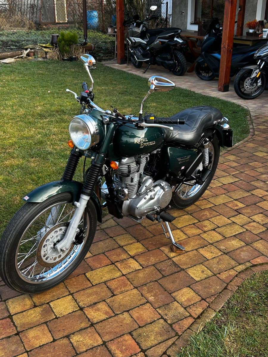 Jednoduchost, odolnost a klasický vzhled, toto všechno jsou vlastnosti krásného motocyklu od značky Royal Enfield. Motocykl ve velmi opečovávaném stavu, bez známek opotřebení. Nyní po servisu a kontrole u nás. Velmi malý nájezd kilometrů. Český TP.