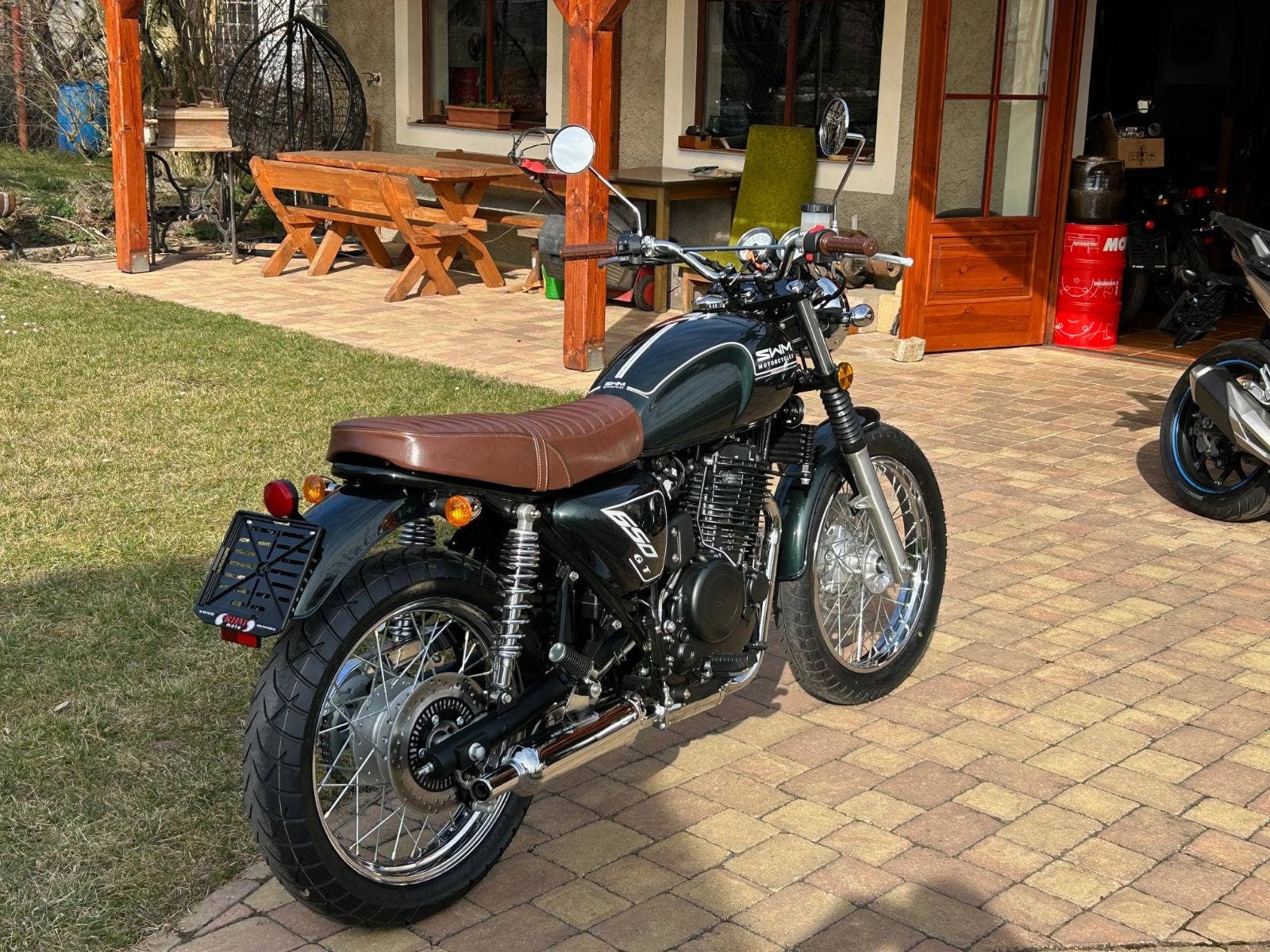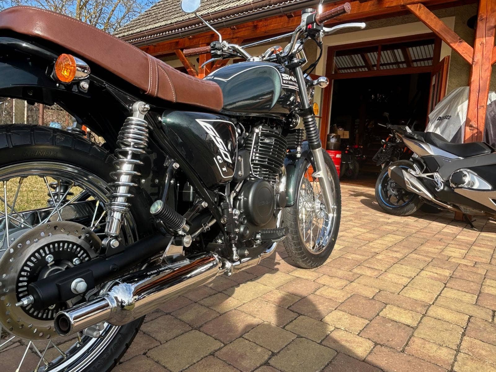 Výkonný jednoválcový motor 650 ccm, stylový design, pohodlné sedlo a špičkové odpružení. Jednoválcový čtyřtaktní motor o objemu 650 ccm vás zaujme svou výkonností, spolehlivostí i nepřehlédnutelným designem. 29 kW zajišťuje dynamickou a plynulou jízdu. Chlazení olejem, 5ti rychlostní převodovka a retro design až do posledního budíku.