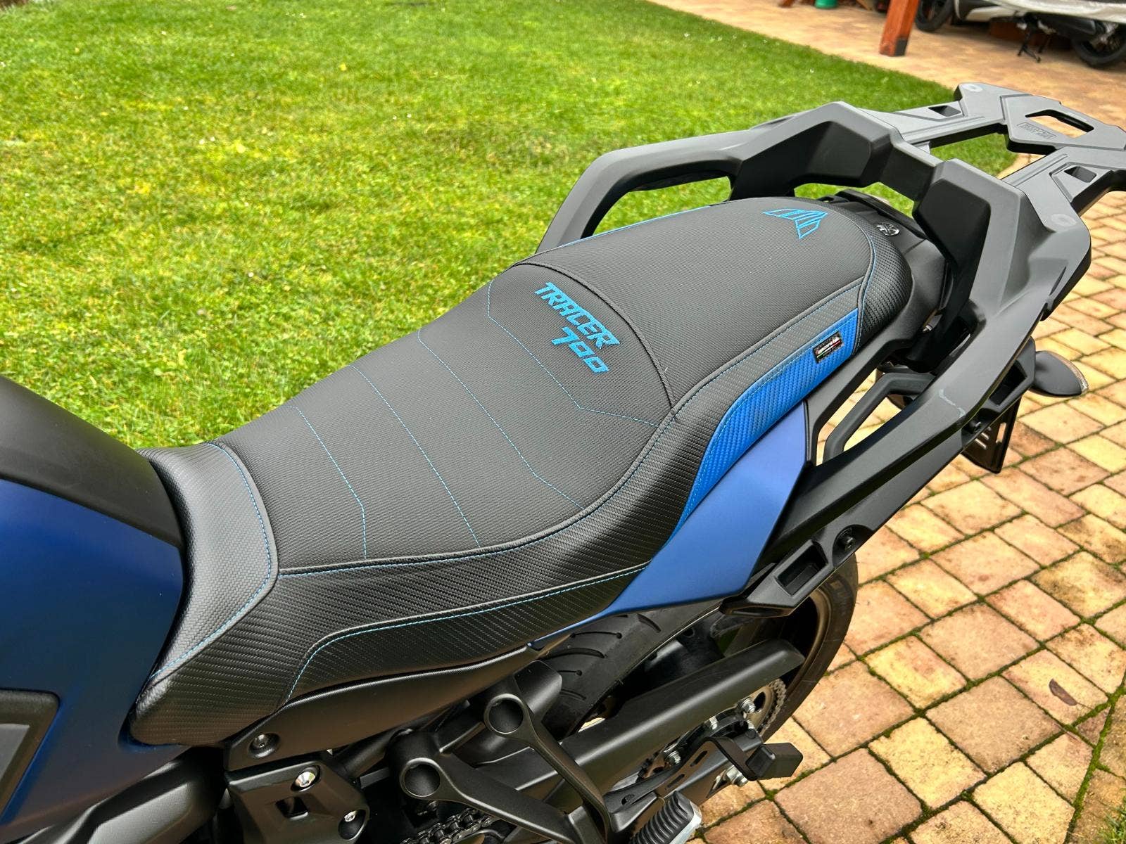 Nádherná Yamaha Tracer s malým nájezdem kilometrů, ve stavu nové motorky. Nyní po servisu a kontrole provedené u nás. Velké množství doplňků, vyšší plexi, padací rámy, vyhřívané gripy, gelové vyšívané sedlo v hodnotě 8.000 Kč, 2 kufry, servisní knížka. Velmi pohodlný sportovní motocykl v neobvyklé krásné modré matové barvě. Dovoz z Itálie.
